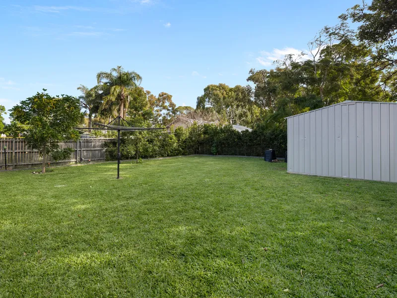 * A fantastic backyard, level and easy care with undercover alfresco, perfect for entertaining family and friends and large storage shed