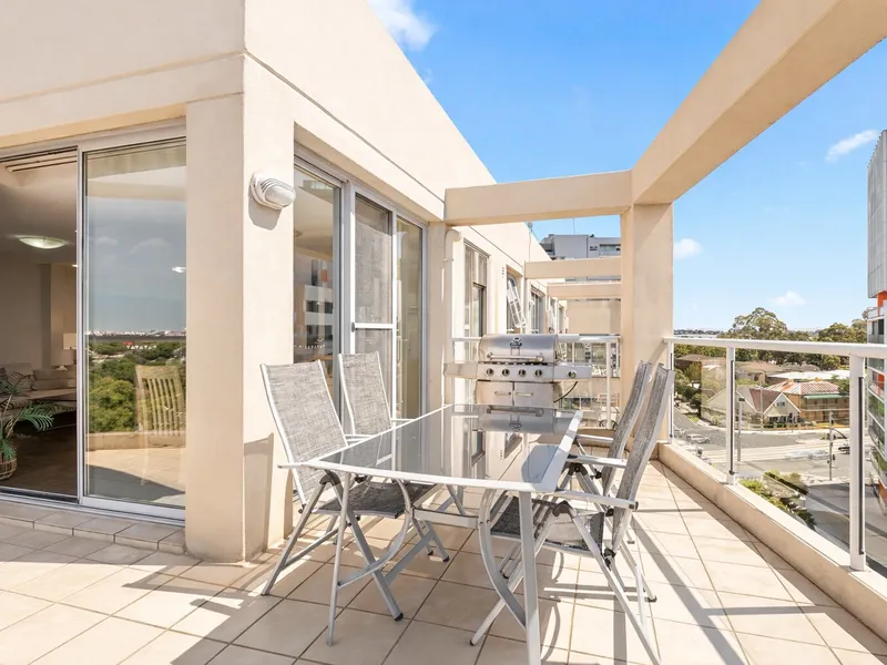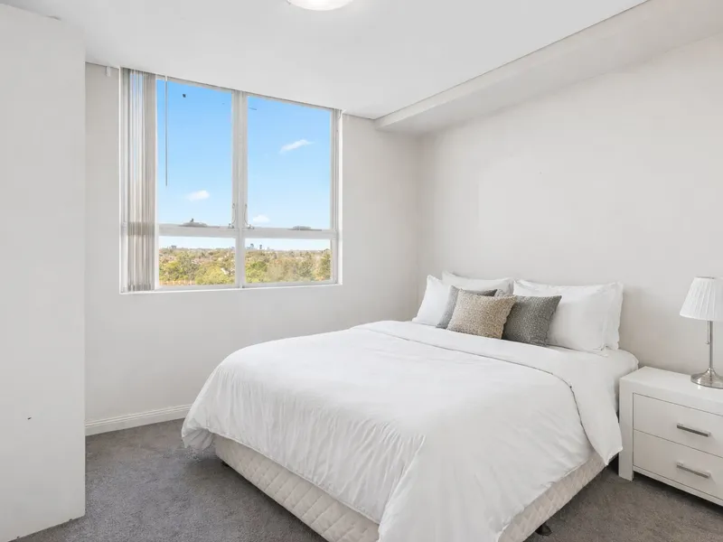 - Light-filled open plan living and dining areas flowing onto a large balcony with Parramatta CBD views.