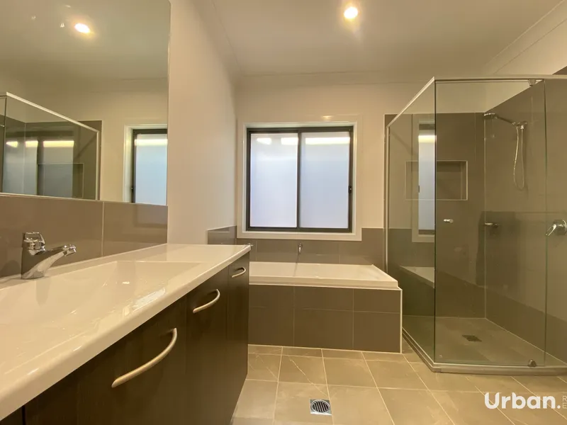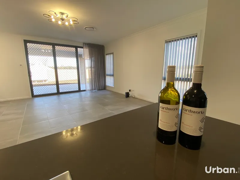Discover luxurious family living in the heart of the thriving Huntlee community with this brand new five-bedroom home, now available for lease. This home ticks all the boxes with having a large exquisite kitchen with gas cooktop, stone benches, dishwasher and butlers alcove, large open plan, living and dining area, media room, master bedroom with ensuite and walk in robe, guest bedroom with built in and ensuite, all other rooms have built in robes, all windows are furnished with quality block out curtains, family bathroom with shower, bath, vanity and toilet, enjoy the outdoor alfresco area with extra concrete paving all the way around the house. Internal laundry, double garage with internal access, and fully fenced yard.