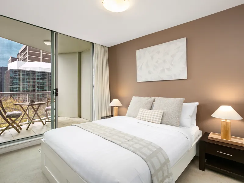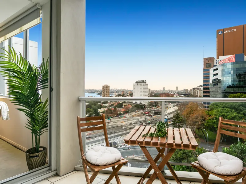 Welcome to your peaceful retreat in the heart of North Sydney. This one-bedroom apartment sits high on the fourth floor of a boutique building and offers sweeping harbour views from the private balcony. Designed with understated comfort in mind, the space is calm, refined, and filled with natural light.