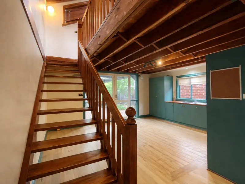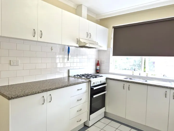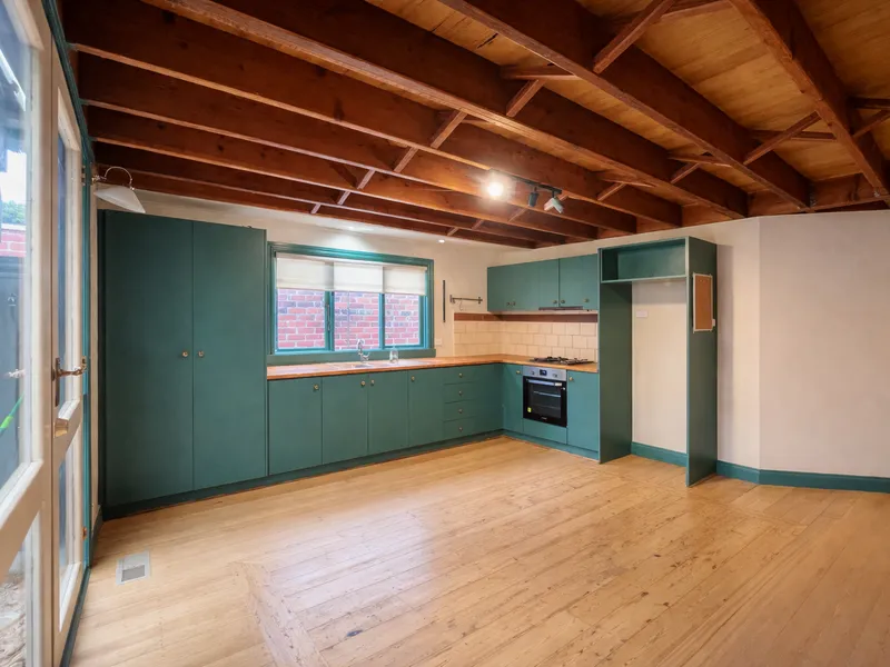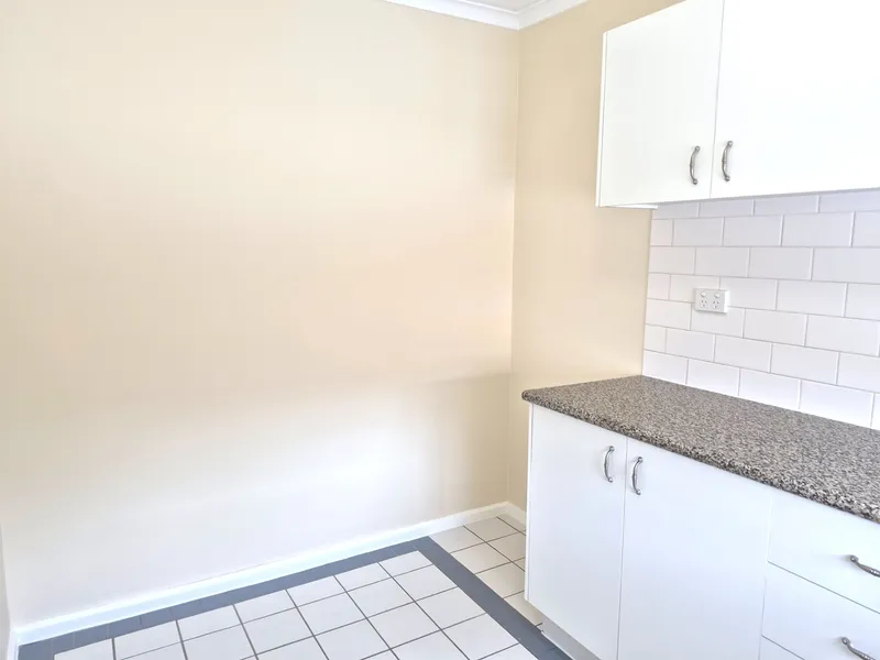 The dedicated entry hall leads into a generous lounge room featuring a large front window and brand new spit system heating and cooling. The adjoining kitchen includes a dedicated meals area, a freestanding gas oven, and white subway-tile splashbacks. The spacious bedroom is fitted with built-in robes. The bathroom features subway tiles and a classic shower-over-bath setup. There's one allocated off-street car space and access to a convenient communal laundry.