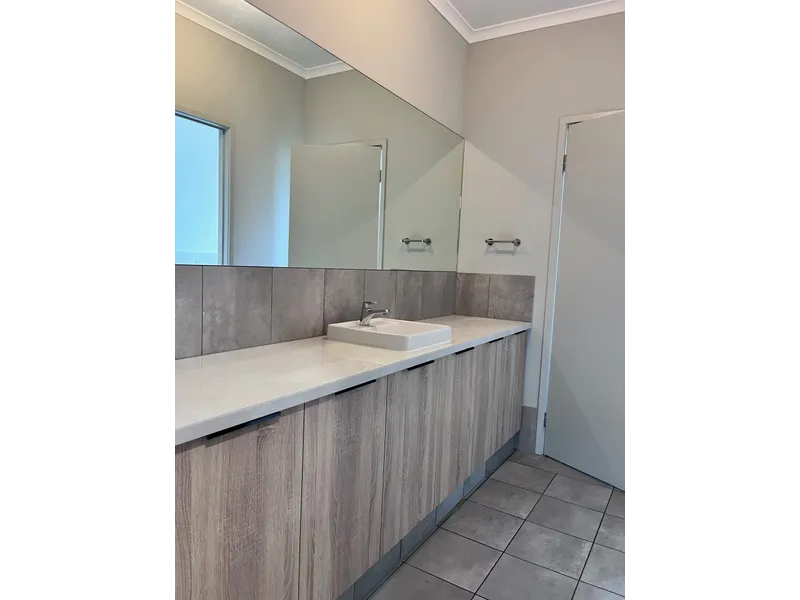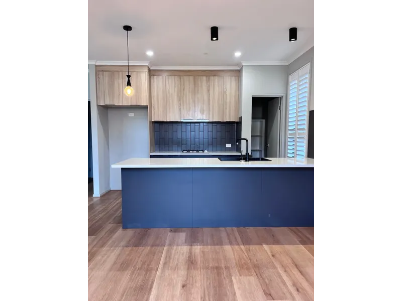 The open plan kitchen, living and dining area forms the heart of the home, featuring sleek cabinetry, dishwasher, walk in pantry, and ample bench space, all flowing seamlessly to the outdoor entertaining area. Sliding doors create a natural connection to the alfresco, perfect for relaxed indoor-outdoor living.