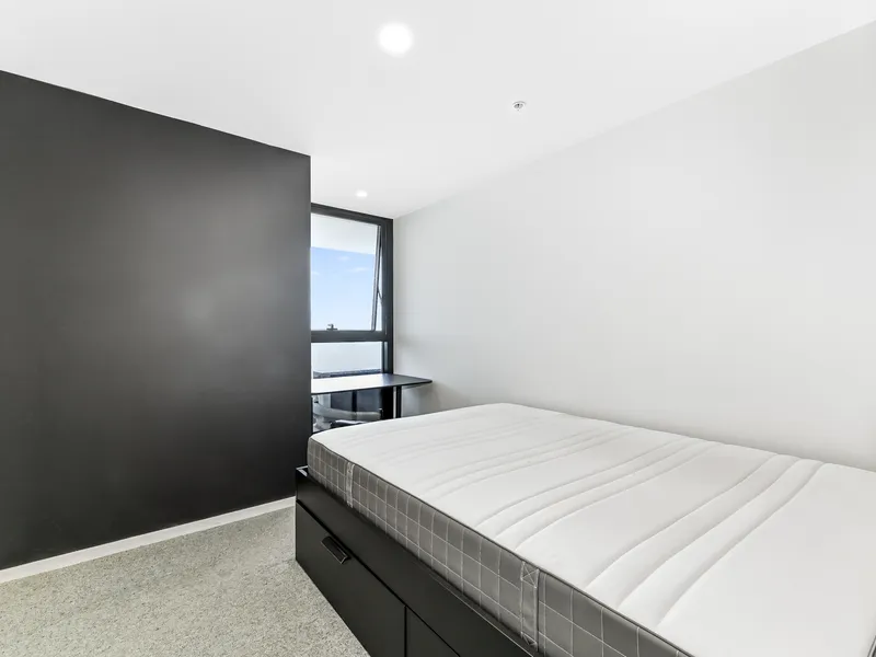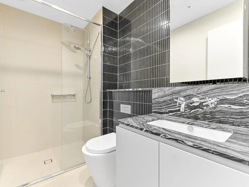 This contemporary, nearly-new two-bedroom unit offers an upscale lifestyle in a convenient location, ideal for couples, young professionals, or university students. The open-plan layout, high ceilings, and expansive windows create a spacious and light-filled interior. Featuring secure video intercom entry, elevator access, and a well-appointed kitchen with quality appliances, including a gas cooktop and dishwasher, this unit offers both functionality and style.