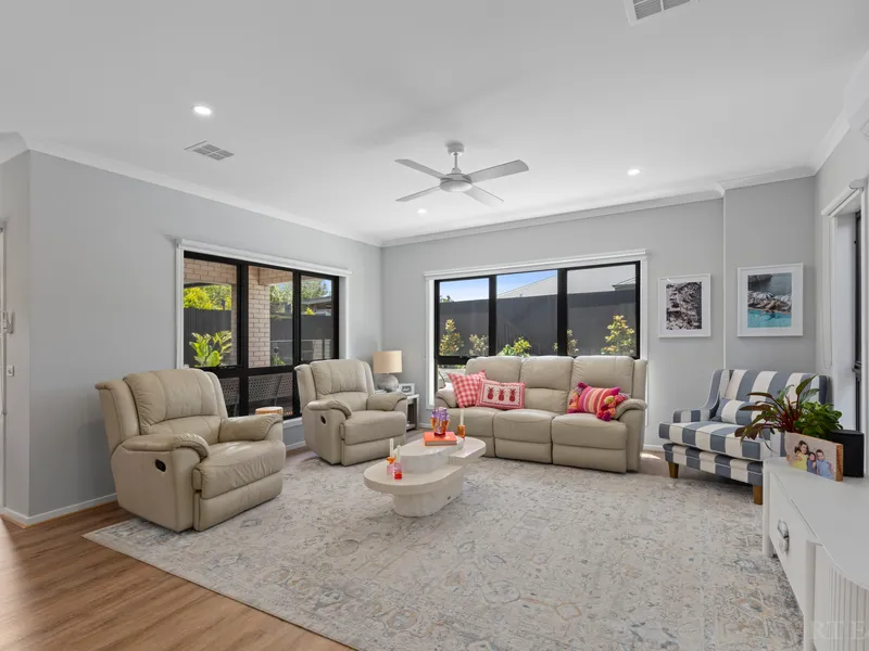 The property also includes a 10kW solar system, oversized double garage, and side access for a boat or caravan, all in a quiet location close to shops, parklands and local wineries.