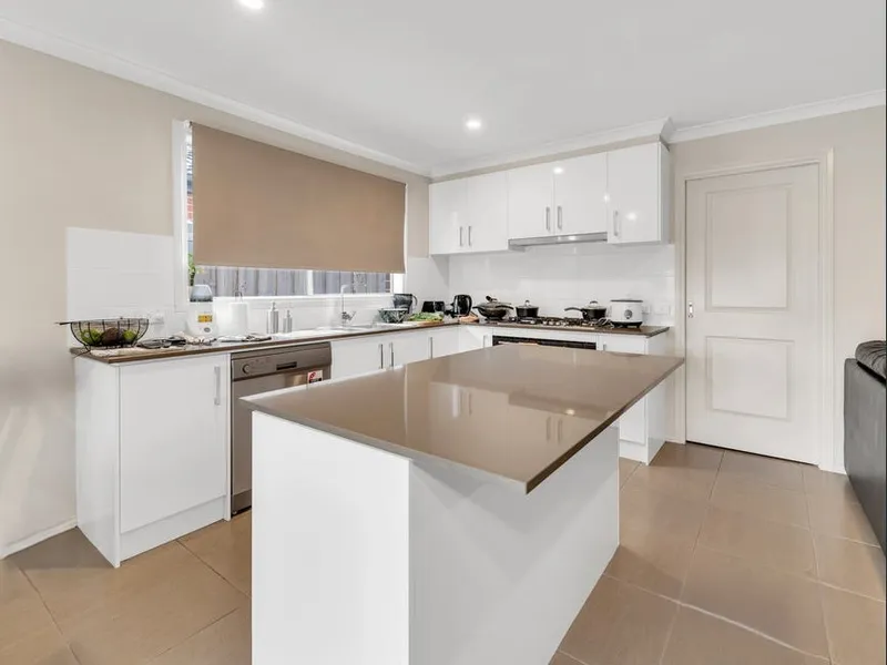 The heart of the house is the sleek and contemporary kitchen, featuring premium appliances, ample storage space, and a central island bench. The adjoining dining and living areas provide seamless integration and the perfect setting for creating lasting memories with loved ones.