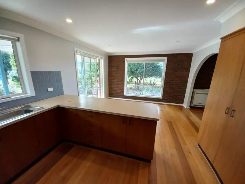 This solid brick home with plenty of room to move. Three bedrooms, two with robes. Open plan kitchen dining, with electric cooking. Large lounge room with electric heating/cooling as well as woodfire. Main bathroom with shower and bath, as well as additional shower and basin in laundry. Attached carport, full length veranda. Fully fenced yard and shed for storage. Surrounded by established garden, With an outlook over farmland. Apply now!