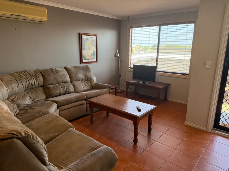 This fully furnished and equipped 3 bedroom unit is ideal for a corporate client looking for somewhere to house their workers with a minimum of fuss. The unit features a double carport and a small court yard with outdoor tables and chairs and BBQ.