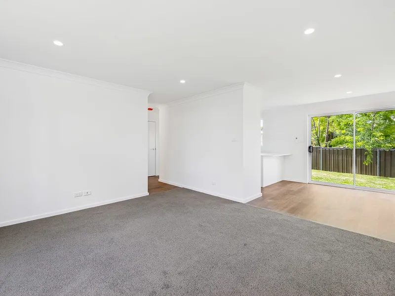with spacious open plan living and powder room on the lower floor and bedrooms with full bathroom all including built in robes on the upper floor.