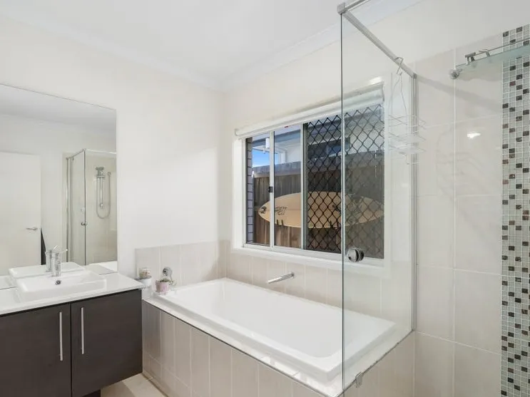 Four generously sized bedrooms provide comfortable living, with the master suite boasting a private ensuite and walk-in robe for added luxury. The remaining bedrooms are fitted with built-in wardrobes, making them perfect for children, guests, or a home office. The home also features two well-appointed bathrooms, ensuring practicality for busy households.