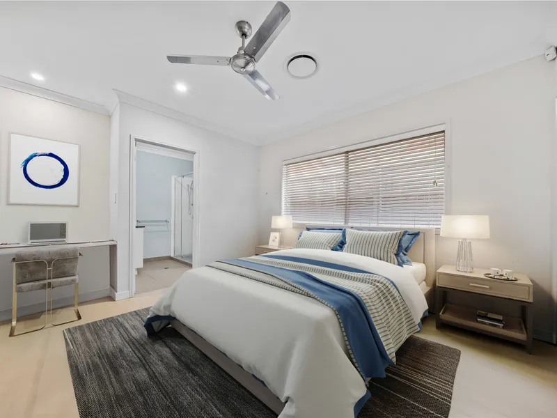 - Second bedroom with built-in robe, ceiling fan, private ensuite, and built-in desk