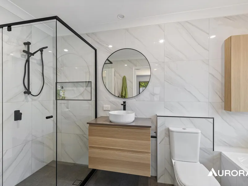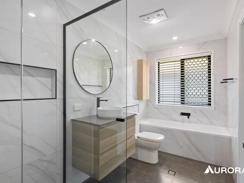- Modern bathroom with quality fittings and finishes including additional separate toilet