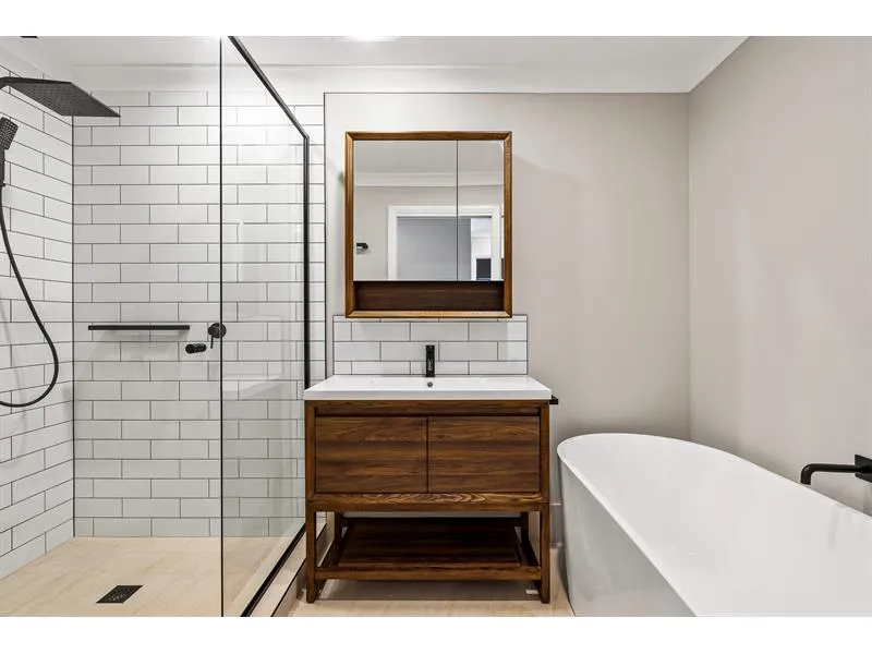 • Modern bathroom upstairs with a luxurious standalone bath + ensuite to the main bedroom.