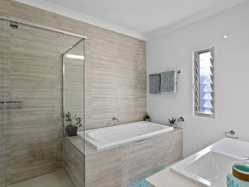 - Luxury main bathroom offers full height quality tiles, spacious shower with separate bath and vanity