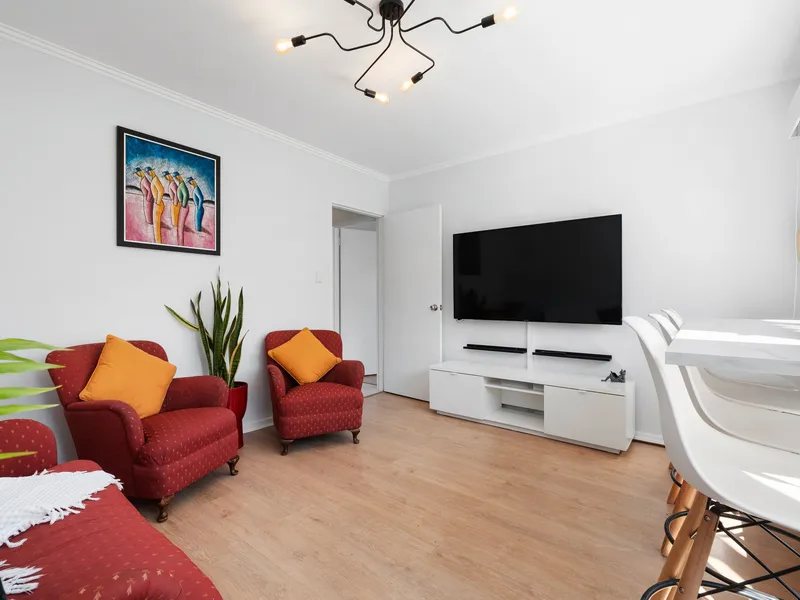 Situated at the front of a classic-style group facing Walsh Street and with the bonus of an apartment-wide alfresco area, the light-lavished residence offers a spacious living/dining area where a clever courtyard-view breakfast bar sets the scene for easy meals. Quality appliances star in the chic, crisp white kitchen – including a gas cooktop and stainless steel oven – while the stylishly-finished bathroom features floor-to-ceiling tiles, a luxe rain shower and room for a washing machine.