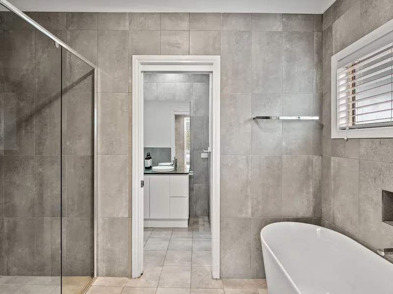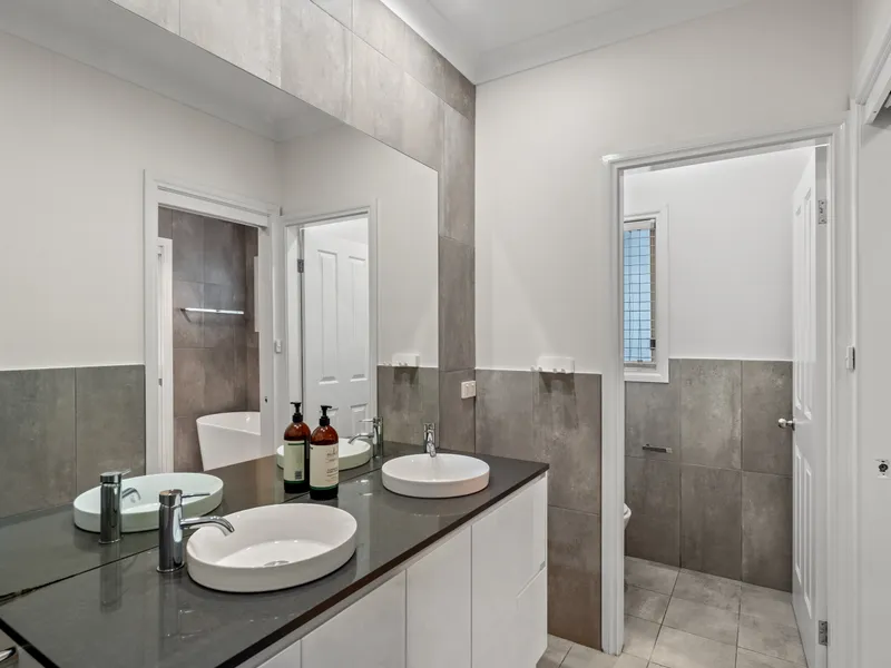 Step outside to enjoy the large backyard and entertaining deck, ideal for relaxing or hosting friends and family. A standout feature of the property is the outdoor bathroom retreat complete with shower, full-size bath and infrared sauna, creating the perfect place to unwind. Additional features include air conditioning to the living area and master bedroom, an oversized double garage with extra storage space and lockable room ideal for an office or studio & secure off-street parking behind front gates.
