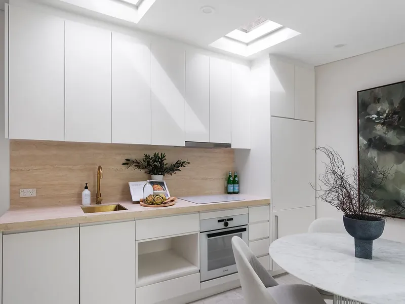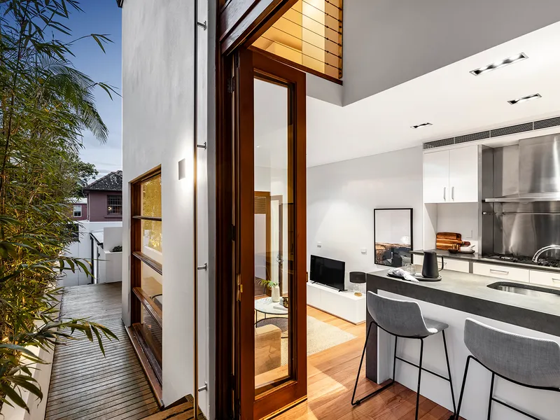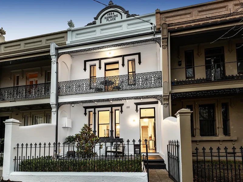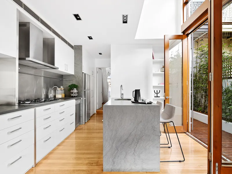Freestanding to one side and flowing over three levels, this elegant terrace showcases an impeccable blend of original charm and character and sumptuous modern design. It's beautifully appointed with high-end finishes and inclusions while capturing northerly sunshine. The ground level is dedicated to entertaining with the eat-in kitchen and cosy living room separated by a private leafy courtyard. The second and third levels offer versatile bedrooms.