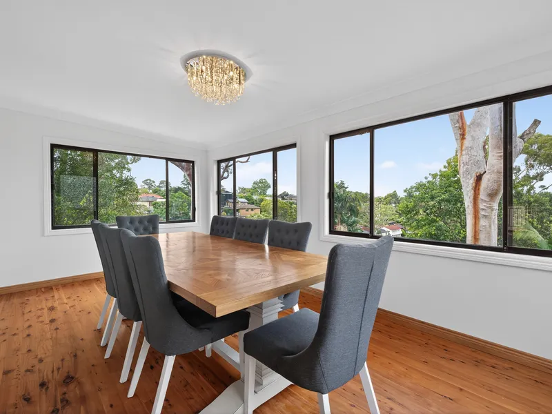 The spacious kitchen makes meal preparation a breeze, equipped with quality Smeg appliances and a dishwasher. It seamlessly connects with the dining room through a serving window for an open-plan layout, ideal for family gatherings. Extending outdoors, the landscaped 1,239m2 block (approx.) offers a large stencilled concrete patio and space to park multiple vehicles, a boat or caravan in addition to the secure double garage. Set in the esteemed suburb of Padstow Heights, convenience is at your doorstep with the local cafe, bus stops, parks and the respected Padstow Heights Public School all within walking distance.