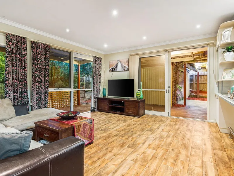 Step outside to a well-landscaped backyard featuring a decked entertaining area and a garden shed, providing the perfect balance of outdoor enjoyment and easy upkeep.