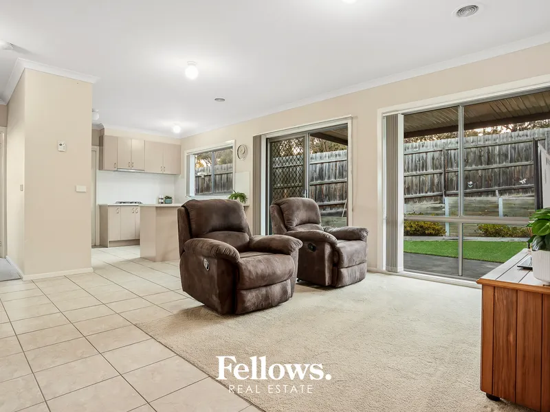 Designed for easy family living, the home includes a welcoming front living room, a well-appointed kitchen with pantry and adjoining dining area, plus a generous rear family room that gives everyone room to spread out. The master bedroom is positioned at the front of the home and includes a walk-in robe and private ensuite, while the remaining two bedrooms are fitted with built-in robes and are serviced by the central bathroom and separate laundry.