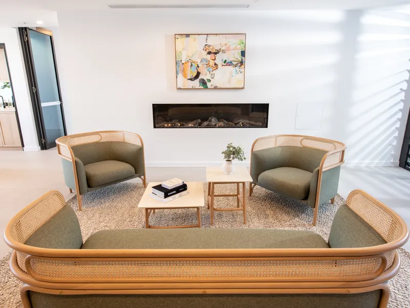 Private dining room with large flatscreen & AV equipment to double as a boardroom. BBQ’s and Pizza oven with seated outdoor Fire Pit area, Residents Lounge and internal fireplace. Work from home office space is provided for residents.