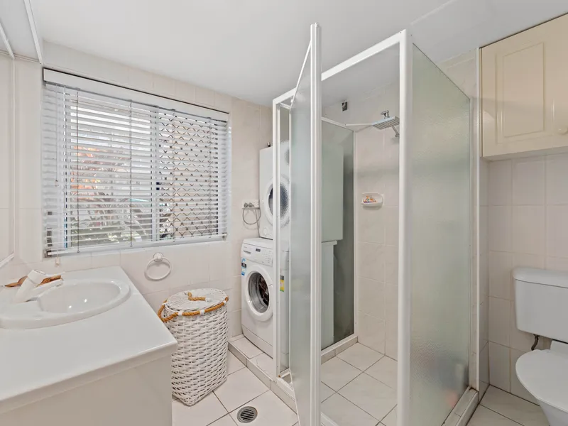 Two generously sized bedrooms provide beautiful spaces for relaxation. The master bedroom features an ensuite bathroom for added privacy, new carpet and air-conditioning, plus the convenience of its own balcony with ocean views.