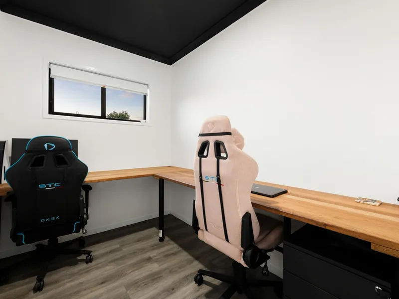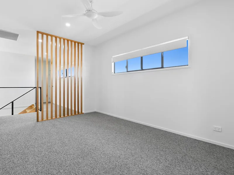 Featuring three spacious bedrooms plus a separate office, the home is ideal for families or professionals seeking extra space. The master suite includes a private ensuite, while two additional bedrooms are serviced by a second sleek bathroom.