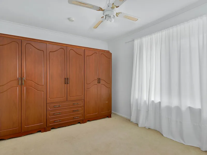 Bedroom one includes a built-in robe, while all four bedrooms are fitted with ceiling fans for added comfort.