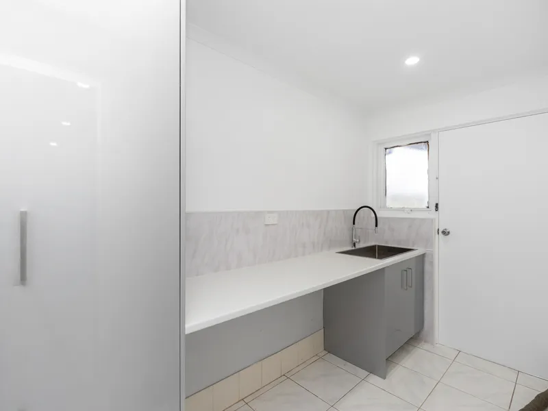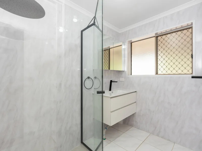 The brand-new bathroom and separate laundry are ready to impress, bathroom with floor to ceiling wall tiling and the convenience of a separate toilet.