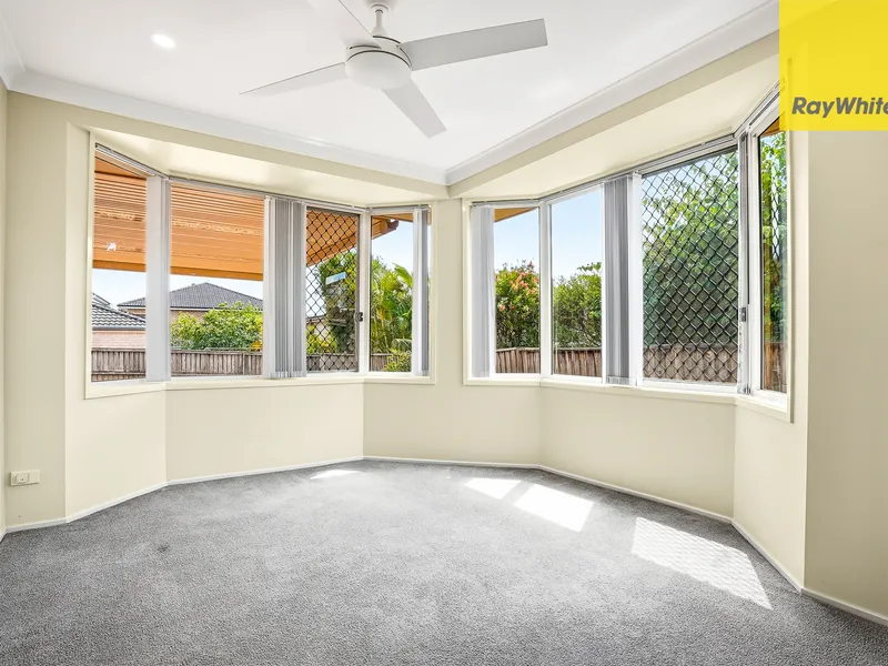Hometown property partners welcome you to this spacious family home centrally located within walking distance to Stanhope Village, Quakers Hill East Public School, bus stops with easy access to Sydney Metro. Offering a free-flowing floorplan with an large open living & dining area providing space for privacy, entertaining and family interaction.