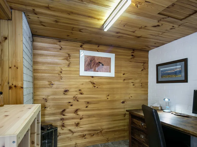 - Wooden villa-style living area with roof windows to bring the natural light