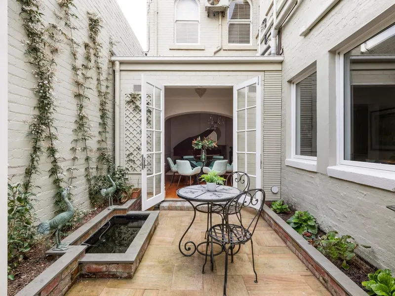 Magnificent and immaculate ‘Montrose’ with its grand profile and proportions is an extra-wide icon with rear Jageurs Lane access in a prestigious South Parkville setting. One of the most impressive properties in the heart of the village, ‘Montrose’ c1875 sympathetically merges illustrious heritage character and inspiring modern enhancement for an outstanding, city-edge family lifestyle by Melbourne University and Royal Park. Elevated behind beautiful garden on a marvelous street, this expansive balcony terrace with ornate high ceilings, marble open fireplaces and hand-painted stained glass windows is launched by a wide arched hallway leading to large separate front sitting room or (4th bedroom) and central living/dining rooms. Also central is a stunning gourmet kitchen with European appliances, integrated Liebherr fridge/freezer and marble/timber benchtops that flows to a TV room and a lantern-ceiling second living room where dual double-glazed doors open to a water-feature terrace and private courtyard garden. Further is a separate toilet and a laundry while at the rear is a remote-control carport with ample loft storage. Flexible accommodation upstairs enhanced by sweeping views including the city skyline feature 3 spacious bedrooms with built-in robes (huge front bedroom opening to the balcony; oversized second with a stylish ensuite), a study (or 4th bedroom) and a chic streamlined bathroom. Additional attributes include enhanced streetscape with underground power/utilities, hydronic heating, split-system air-conditioning, 15A power to garage, polished floorboards and plantation shutters. ‘Montrose’ presents a blue-ribbon lifestyle in the University High School zone near extensive parklands, trams, hospitals precinct, Queen Victoria Market, cafes and the CBD’s endless range of restaurant and shopping options.