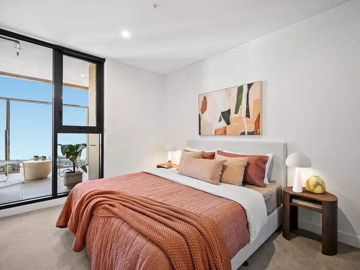 This 3-bedroom, 2-bathroom apartment features a spacious master with ensuite, a kitchen with a large island bench, and a large balcony with CBD views. With generous living and storage spaces, it truly feels more like a house than an apartment — the perfect family home.
