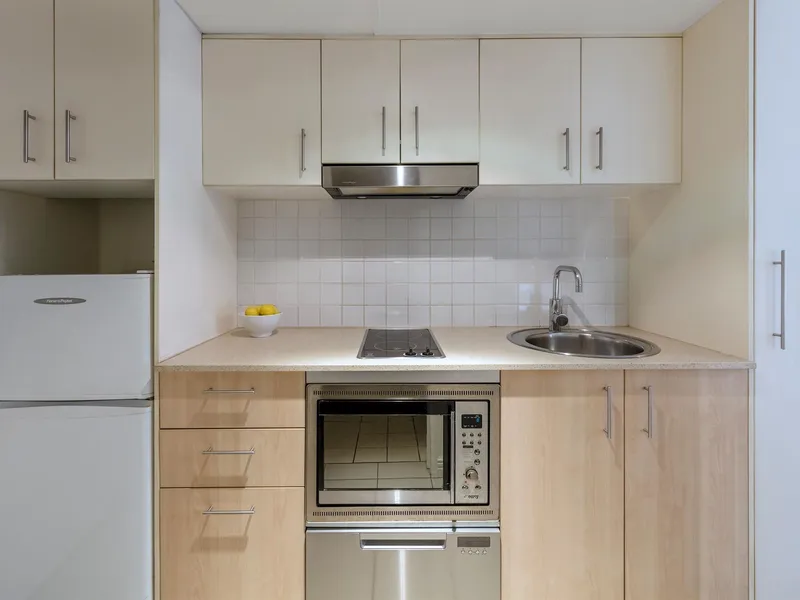 • Stylish kitchen with stone bench-tops, 2 burner cook top, dishwasher & fridge/freezer