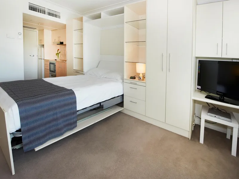 Complete with furnishings & appliances, the apartment is move in ready. The apartment comes with a wall bed, a clever space saving solution which provides additional storage & shelving & allows for the bed to be placed up allowing more floor practical floor space during the day.