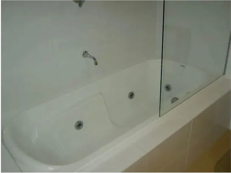 Spa bath, and floor to ceiling mirrored built-in wardrobe
