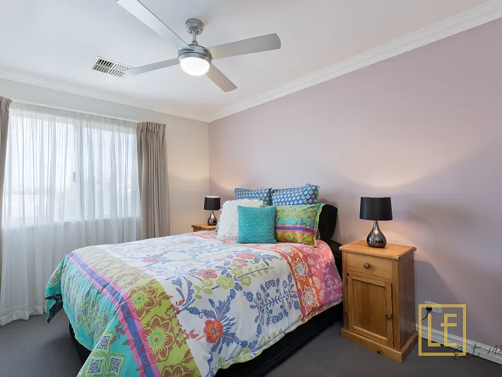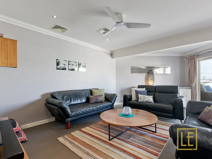 On the upper level are two other double bedrooms with separate family bathroom, also a second lounge/theatre area with smart TV and surround sound system leading out to a balcony. From the balcony you have Perth city views which makes it a charming area to enjoy the city skyline. Upstairs lounge, 2nd & 3rd bedrooms have ceiling fans should you not wish to use the ducted air conditioning.