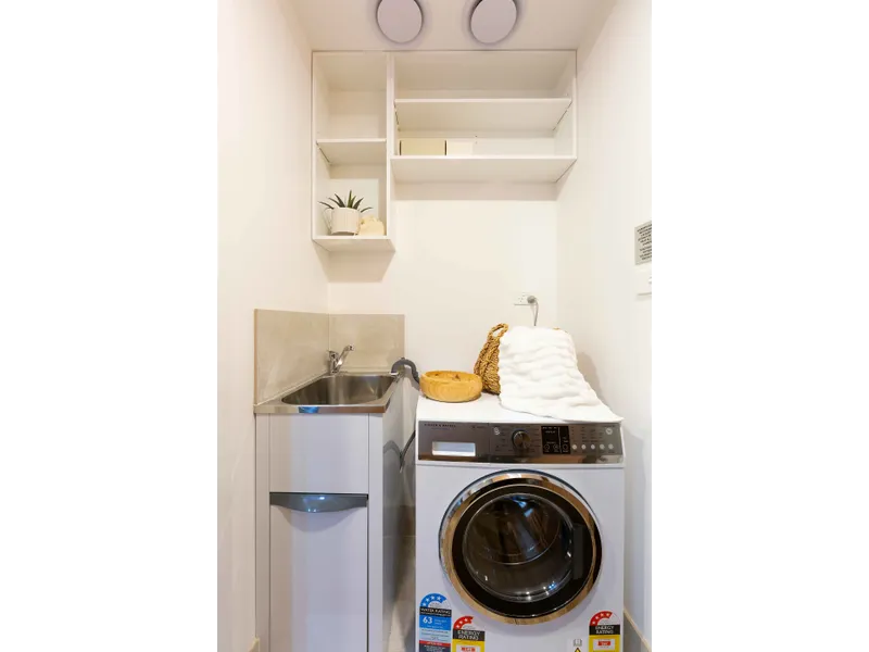 • High quality finishes and inclusions, including beautiful stone benchtops, stylish timber joinery, floor-to-ceiling tiling in bathrooms, timber flooring, carpark and storage cage.