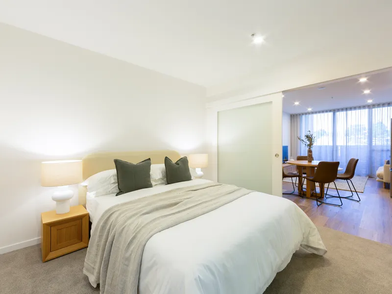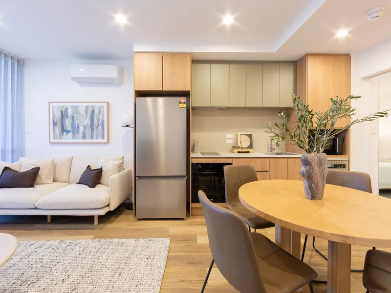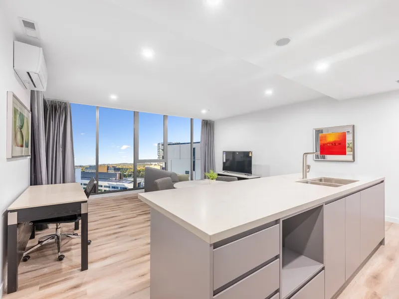 Located in one of Canberra's most sought-after addresses, W2 offers the perfect blend of modern design and convenience. Enjoy easy access to Woden Westfield and the public transport station, connecting you to everything you need. This spacious, open-plan apartment features elegant finishes throughout, including integrated appliances, stone benchtops, and cabinetry with ample storage.