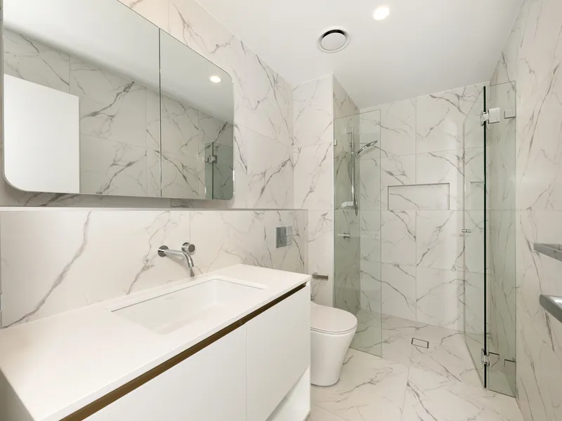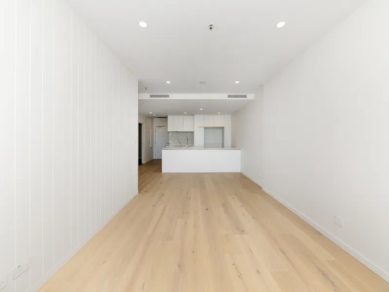 The apartment features three well-sized bedrooms, including a spacious master retreat, complemented by sleek, modern bathrooms with high-quality fittings. A light-filled open plan living and dining area flows effortlessly into a sophisticated kitchen, complete with modern appliances and clean, contemporary finishes — ideal for both relaxed everyday living and effortless entertaining.