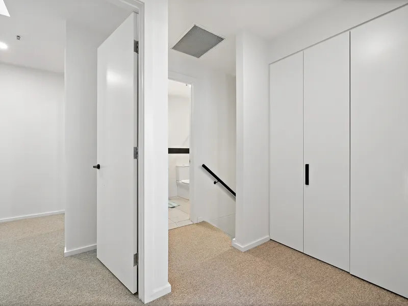 From the moment you step inside, the soaring ceilings, engineered timber flooring, and striking staircase set the tone for refined living. The expansive open-plan layout effortlessly flows onto a generous balcony, capturing breathtaking views across Woden Valley and beyond. The designer kitchen stands as the heart of the home, showcasing Caesarstone benches, a chic brick splashback, and premium SMEG appliances all tailored for those who appreciate the finer things.