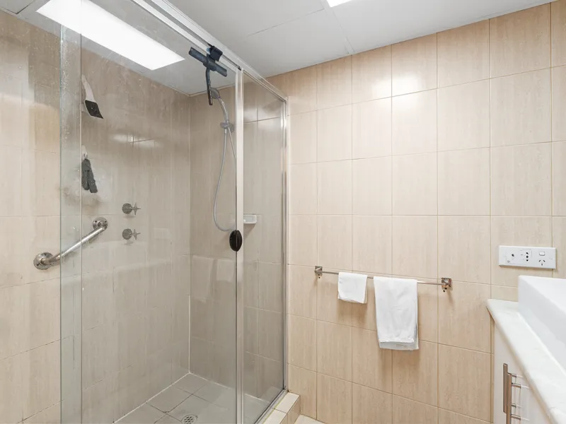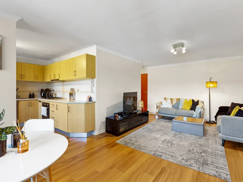 This freshly painted, two bedroom apartment is located on the first floor of a secure building with lift access and intercom entry. The home features a large open plan living and dining area, perfect for everyday living and entertaining. The full sized kitchen includes a gas cooktop, dishwasher, and ample storage. Both bedrooms are generously sized with built in robes, and the bathroom is fitted with floor to ceiling tiles, a spacious shower, and a sleek vanity. A private balcony provides outdoor space, while off street reserved car parking ensures convenience.