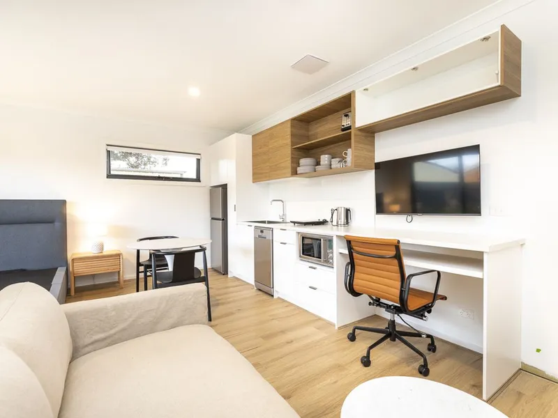 A great size living room area combined with dinning area & functional kitchen. Filled with natural light, the kitchen has stainless steel appliances, stone bench tops and ample cupboards for storage. Studyroom can use to bedroom