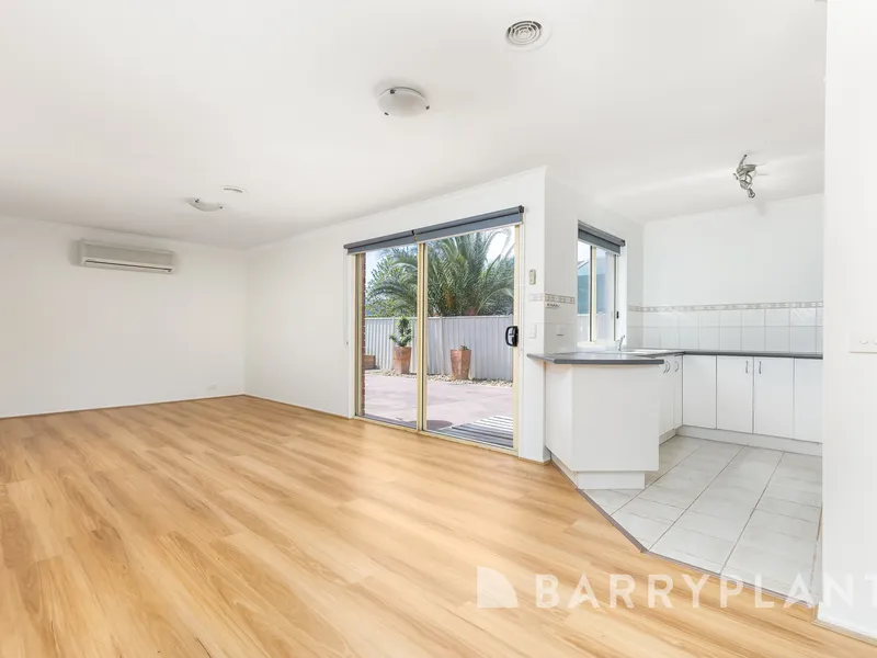 The home opens up into a spacious living/dining area with a sunny garden outlook that is cooled by a split system.