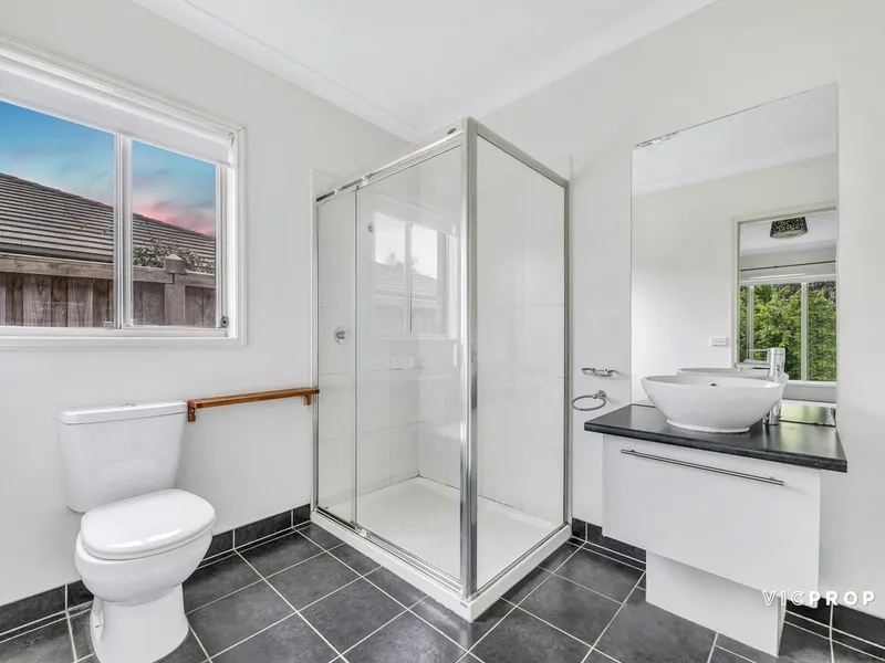 The spacious master is located to the front of the home and has a walk in robe and ensuite with double vanity. The second bedroom is of an equally spacious size as the master and similarly to the third bedroom, has built in robes and Timber Floorboards in all Rooms.