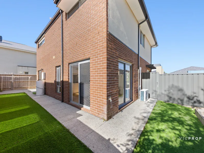 The ground floor features a light-filled open-plan living and dining area, complemented by a modern kitchen with quality appliances, ample storage, and generous bench space—perfect for everyday living and entertaining. A low-maintenance backyard provides space to relax, while the secure double garage with internal access adds convenience.