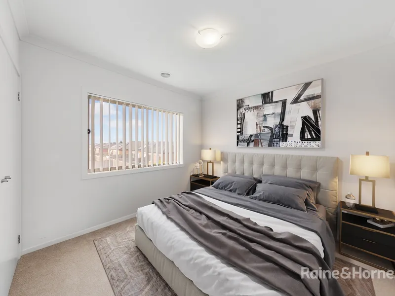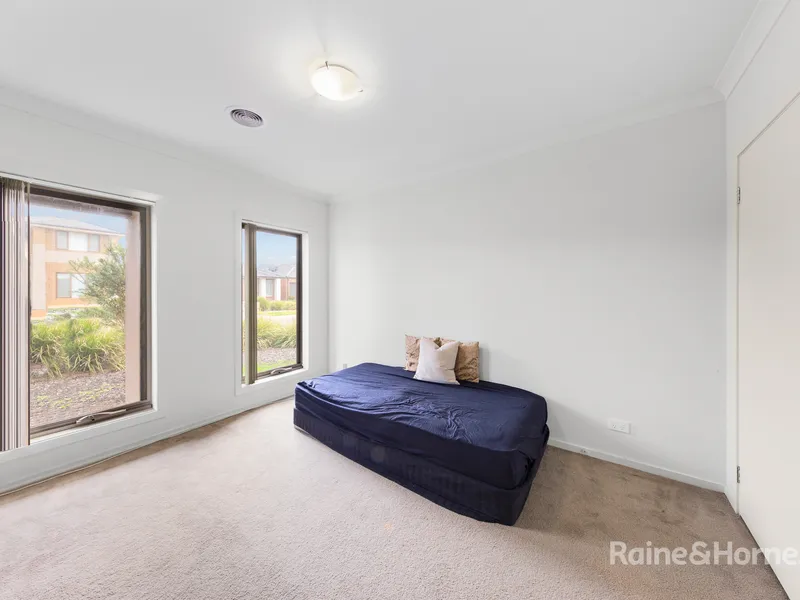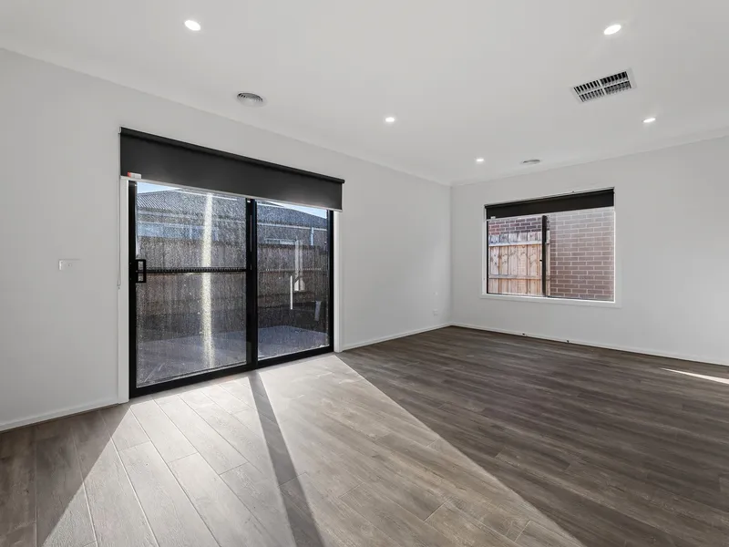 This contemporary double storey house is featuring 4 large bedrooms, 3 spacious bathrooms,double remote garage; high ceiling in ground floor. Only a short distance away from government and private schools, Sanctuary Lakes and Point Cook Shopping Centres, Williams Landing and Aircraft train stations. It also includes an open designed large kitchen overlooking dining and family area with stone bench top and modern appliances. The alfresco and low maintenance backyard offers an outdoor entertainment area perfect for BBQs and the kids to play on.