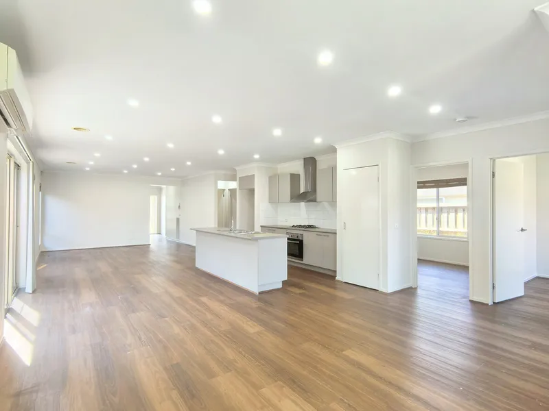 Accommodation includes four well-proportioned bedrooms designed for comfortable living, main bedroom features a walk-in robe and private ensuite, while the remaining three bedrooms are fitted with built-in robes and serviced by a central bathroom with a practical family-friendly layout. Additional features further enhance the home’s appeal, including a double garage with remote access and internal entry. Landscaped gardens provide a low-maintenance outdoor setting, allowing more time to enjoy the surrounding lifestyle.