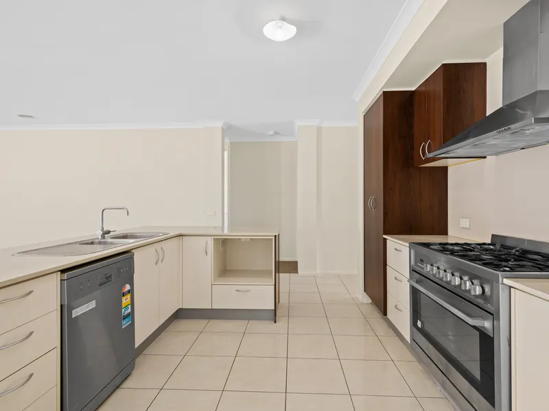 Inside, the home opens to light-filled living and dining areas designed for both everyday comfort and entertaining. Multiple living zones provide flexibility for families who appreciate extra space to relax, gather or host guests, while the interior creates a warm and welcoming feel throughout. The contemporary kitchen sits at the heart of the home and overlooks the main dining and family area. Featuring stainless steel appliances and a large island bench, the space offers practical functionality with plenty of storage and preparation room.