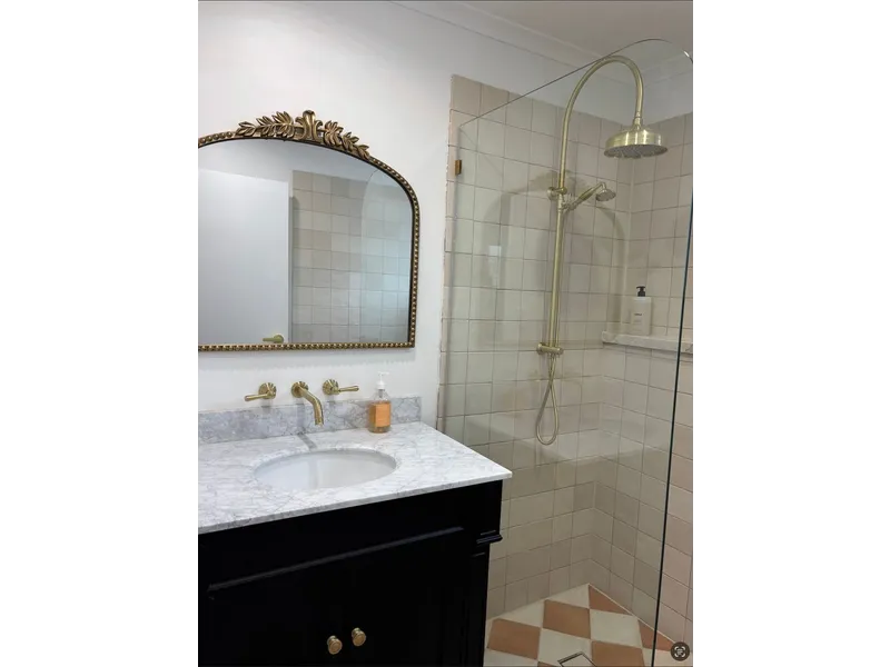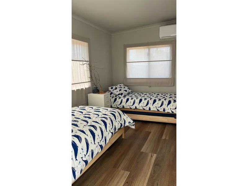 The bathroom has been tastefully renovated with fresh, contemporary finishes, while year-round comfort is ensured with air conditioning and ceiling fans throughout.