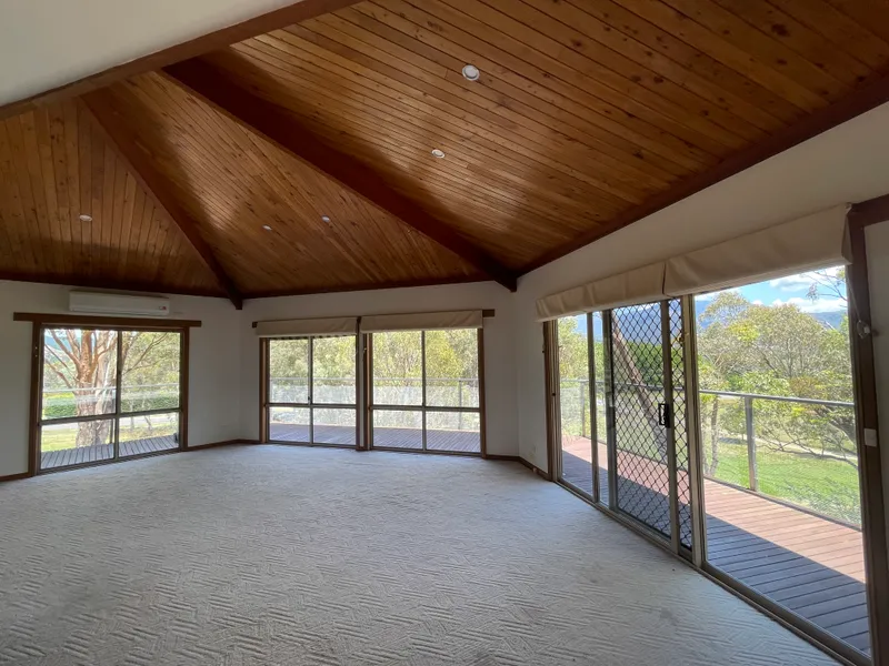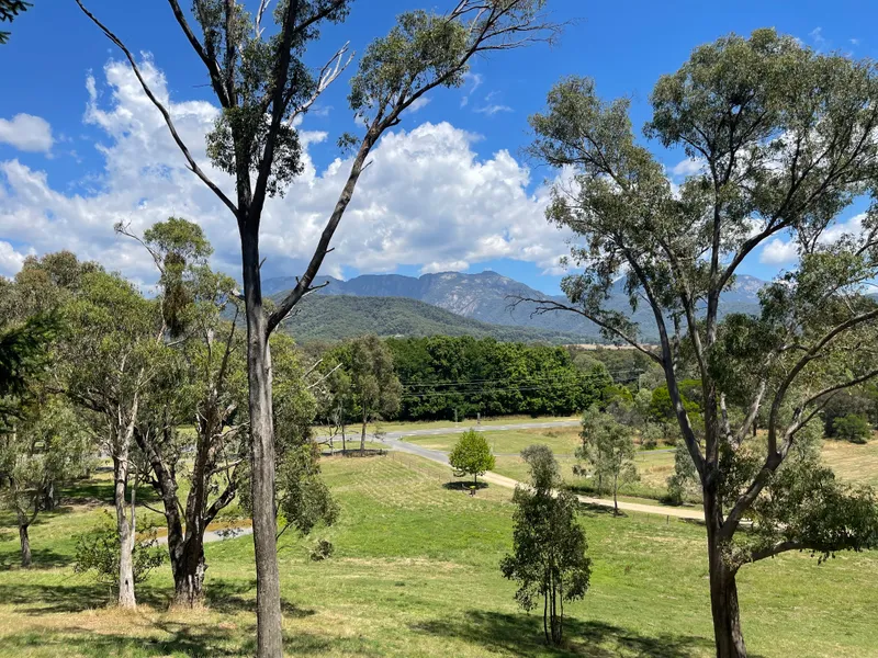This large family home is located in picturesque Porepunkah and elevated up high hidden amongst the tall trees with the most stunning views of Mount Buffalo we have ever seen!